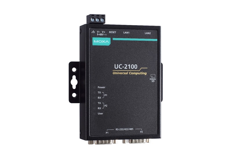 - 1-2 Ethernet porte (inkl. Gigabit på UC-2112) + op til 2 software-valgbare RS-232/422/485, mPCIe option til Wi-Fi/cellular (UC-2104)