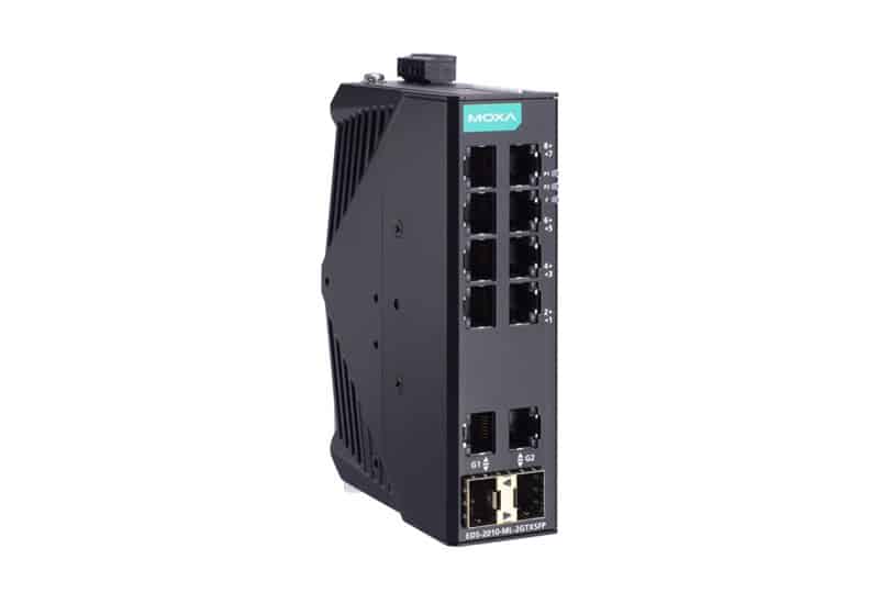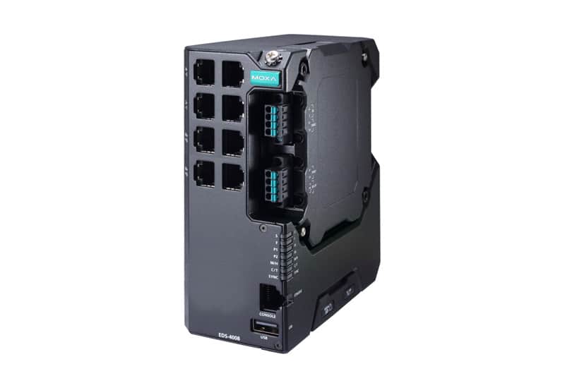 Moxa EDS-4008-LV managed industrial ethernet-switch med PoE og Security Level 2, IEC 62443, Moxa