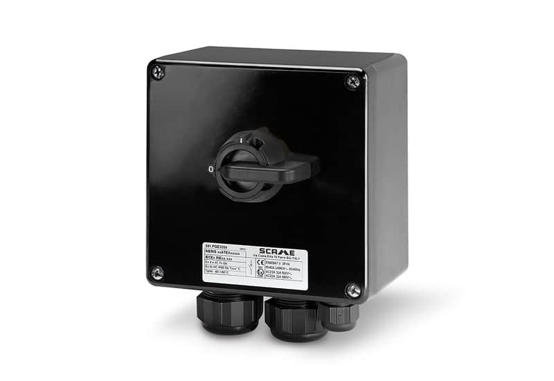 SWITCH, 3/4 POL+ 1NO, 20A, ATEX II 2GD 591 AGE2004-1, BLACK GRB, ALUKAPSLING:202x232x142, Scame