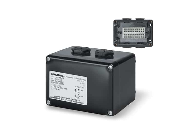 ATEX-TERMINAL BOXES, 10x2,5 MM TERMINALS, 12A ZENITH P, BLACK, 690V, IP66, 3050W, II 2GD, Scame